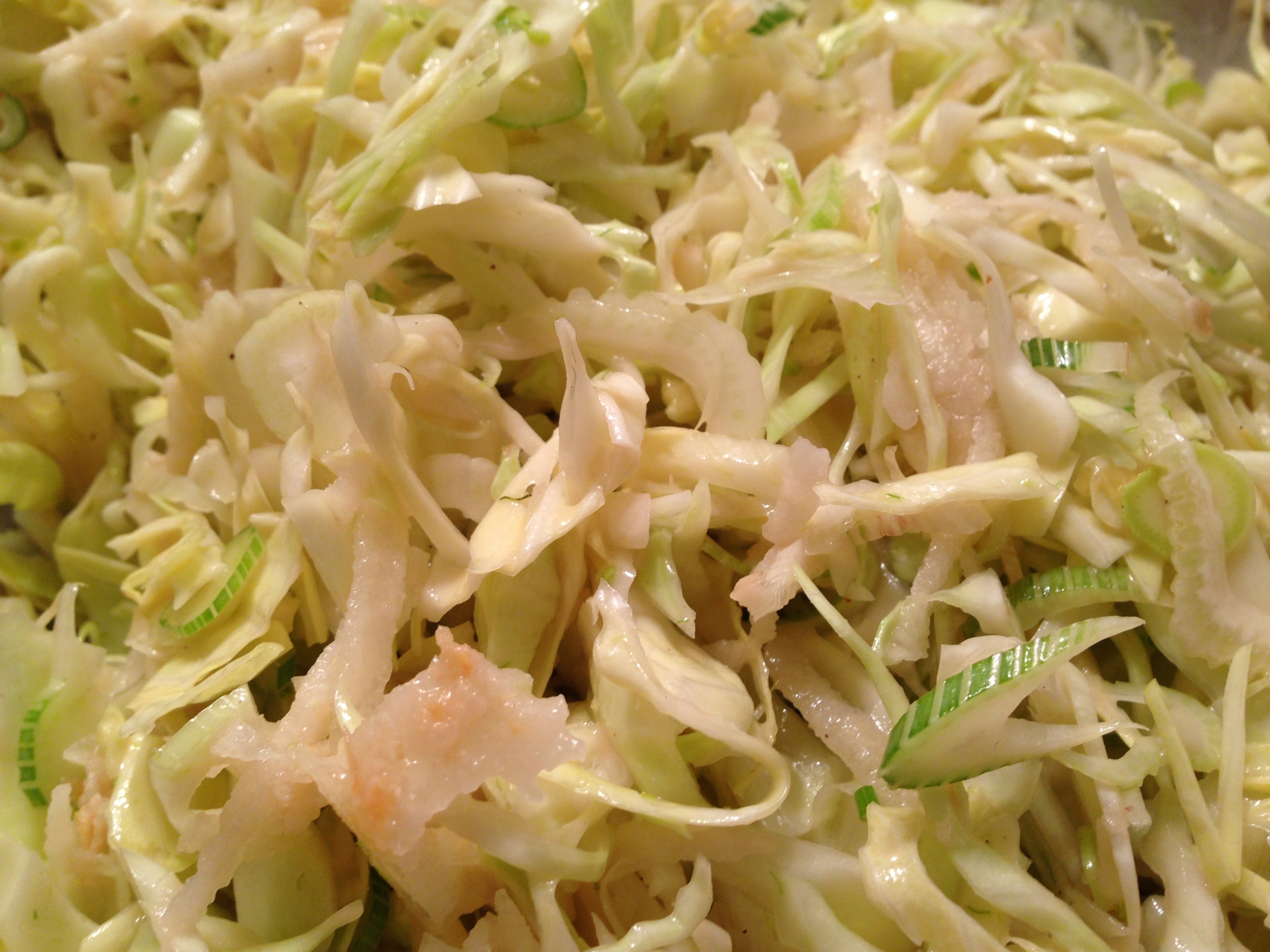 – Slice the fennel and cabbage on a mandolin or very finely with a knife.