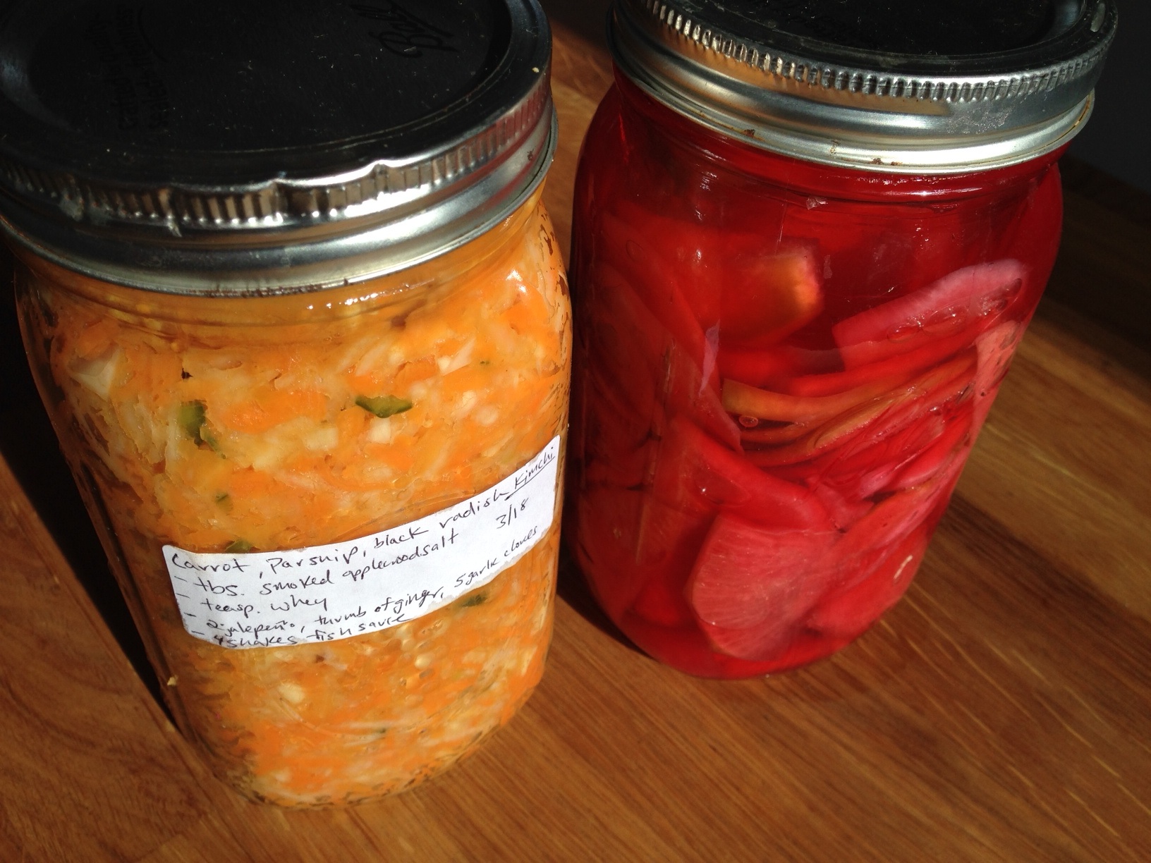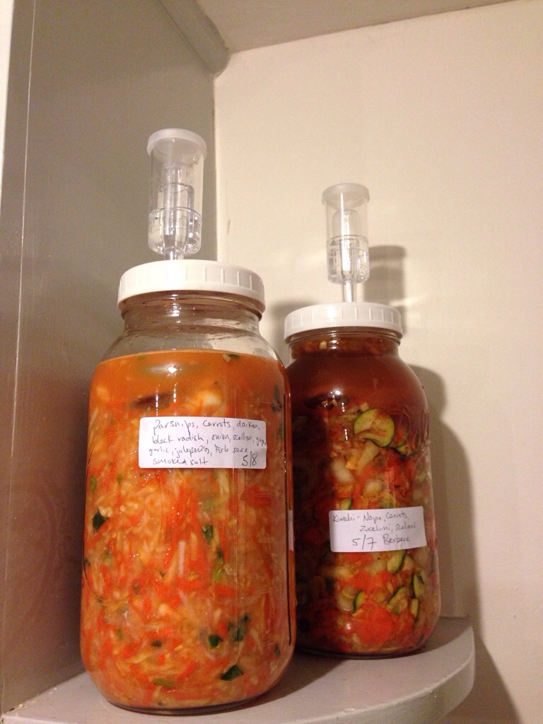 I’ve got sliced water melon radish and carrot, parsnip, black radish “Kim Chi” going right now.