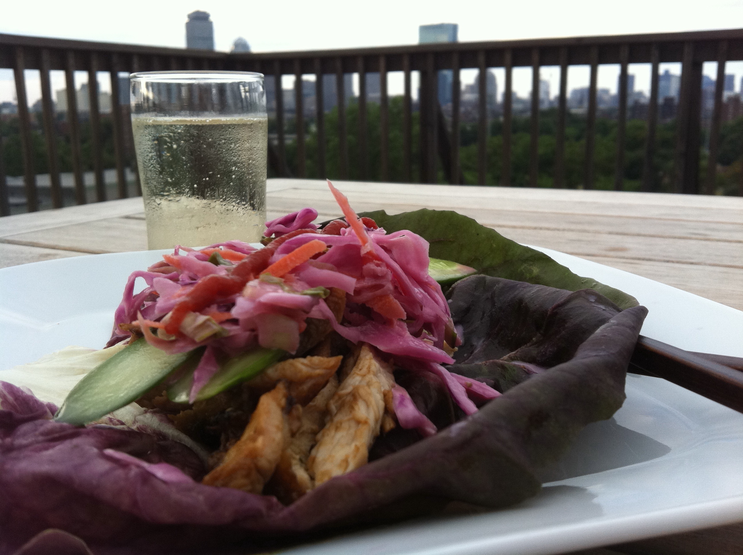 Lettuce wraps make great picnic food for a hot summer night. I was inspired by the gorgeous full head of radicchio I got in my CSA box from Enterprise Farm. Big shout out here to Enterprise Farm in Western MA, without their year round weekly vegetable box I don’t know what I would do.